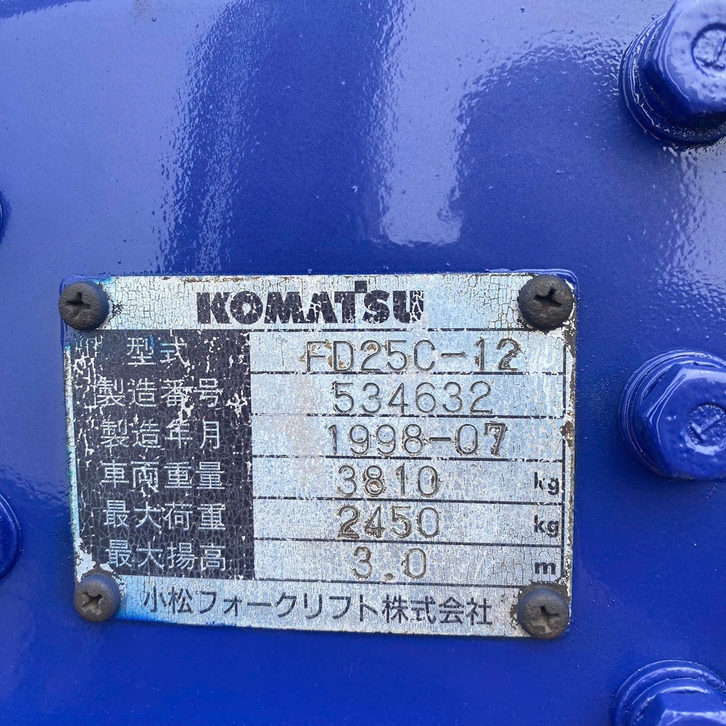 Thông số kỹ thuật xe nâng dầu Komatsu 2.5 tấn như sau: