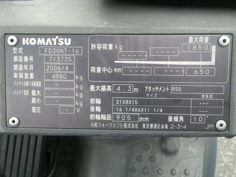 - Xe nâng dầu Komatsu 3.0 t model: FD30NT-16, sx 2006, có gắn bộ kẹp giấy tròn (rotating Fork) lốp đặc ,đáp ứng tốt ở nhiều điều kiện môi trường, kho bãi. Là dòng xe sử dụng động cơ S6D102 nổi tiếng của hãng Komatsu nên xe có công suất cao, khỏe, chi phí bảo trì thấp .