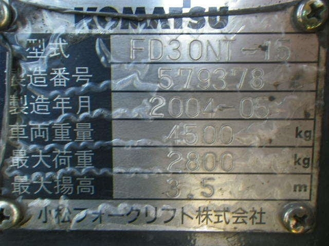 Xe nâng dầu Komatsu 3.0 tấn, model: FD30NT-15, sản xuất 2004, Dòng xe nâng dầu ngồi lái sử dụng động cơ 4D94LE, tiêu chuẩn khí thải Euro II Nhật, tiết kiệm nhiên liệu, dùng bơm kép giúp thủy lực khỏe hơn 1.5 lần so với xe dầu (diesel) của hãng khác, năng suất nâng hạ cao, chi phí bảo trì thấp, được hãng Komatsu nhật sản xuất cho độc quyền cho dòng xe dầu Komatsu.