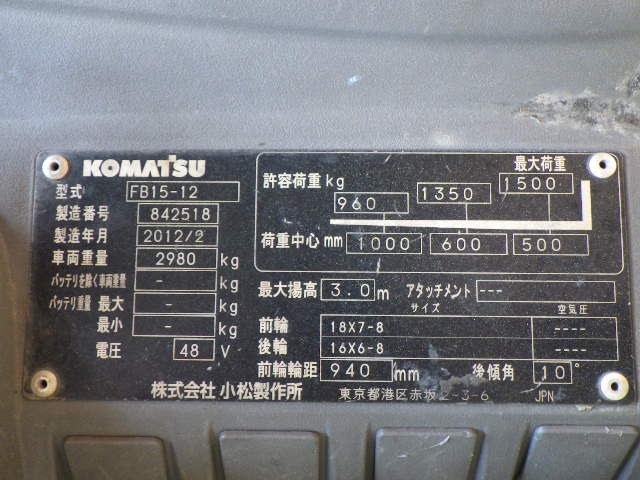 XE NÂNG ĐIỆN 1.5 TẤN KOMATSU FB15-12 842518