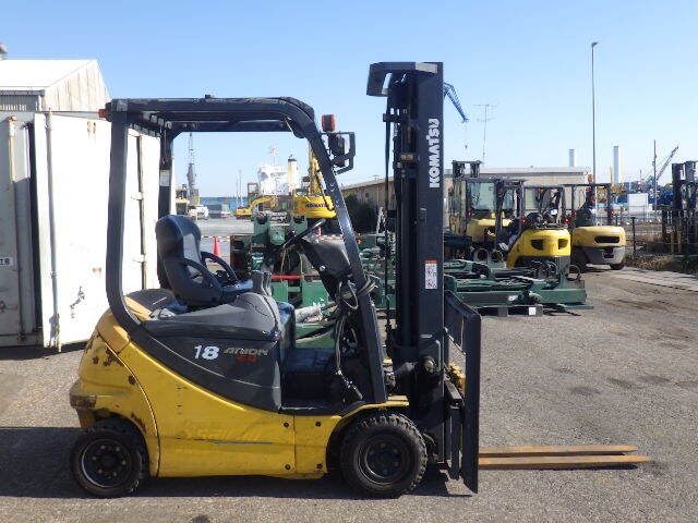 Xe nâng điện 1.8 tấn Komatsu FB18-12 là dòng xe ngồi lái (sit-down) nhập khẩu Nhật Bản, sử dụng ắc quy, nổi bật với động cơ AC không chổi than mạnh mẽ, bền bỉ. Model này có sức nâng 1.800 kg, chiều cao nâng thông dụng từ 3m đến 4.3m, tích hợp dịch giá, phù hợp cho kho xưởng, kệ hàng.