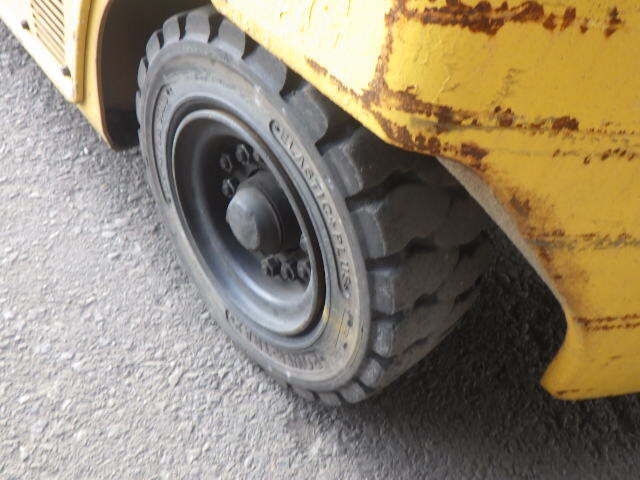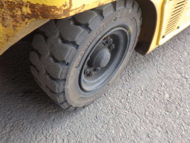 Xe sử dụng lốp trước kích thước 23x9-10-16PR và lốp sau 18x7-8, mang lại khả năng bám đường tốt và di chuyển linh hoạt trên nhiều loại bề mặt. Chiều dài càng khoảng 975 mm phù hợp với pallet tiêu chuẩn, giúp việc bốc xếp hàng hóa diễn ra nhanh chóng và hiệu quả. Góc nghiêng trụ 8 độ giúp giữ hàng ổn định trong quá trình nâng và di chuyển.