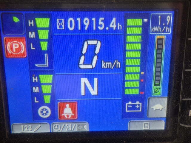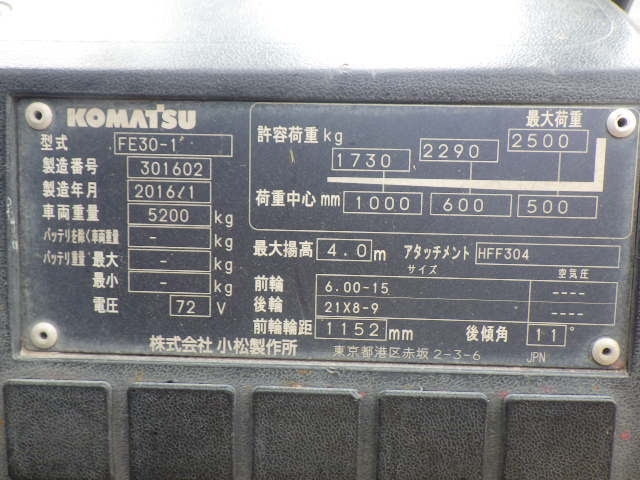 Theo biểu đồ tải trên xe, Komatsu FE30-1 có khả năng nâng tối đa lên tới 2500 kg tại tâm tải 500 mm, 2290 kg tại 600 mm và 1730 kg tại 1000 mm. Điều này cho thấy xe có thể làm việc hiệu quả với nhiều loại hàng hóa khác nhau, kể cả những kiện hàng có kích thước lớn hoặc trọng tâm thay đổi. Hệ thống thủy lực hoạt động chính xác, giúp quá trình nâng hạ diễn ra mượt mà, hạn chế rung lắc và đảm bảo an toàn cho hàng hóa.