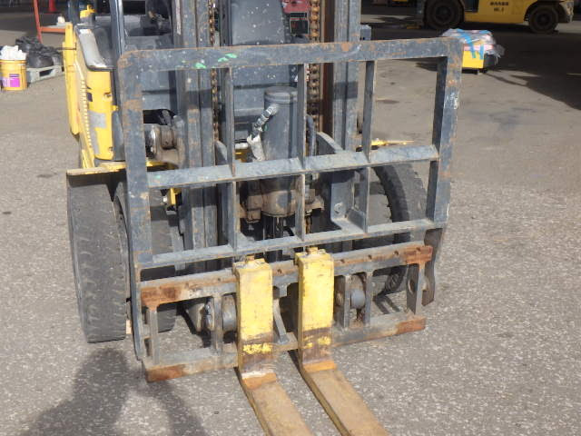 Xe sử dụng lốp trước kích thước 6.00-15 và lốp sau 21x8-9, giúp đảm bảo độ bám tốt và khả năng di chuyển linh hoạt trong nhiều điều kiện mặt sàn khác nhau. Chiều dài càng khoảng 1152 mm phù hợp với các loại pallet tiêu chuẩn, giúp việc bốc xếp hàng hóa diễn ra nhanh chóng và thuận tiện. Góc nghiêng trụ 11 độ hỗ trợ tốt trong việc giữ hàng ổn định khi di chuyển.