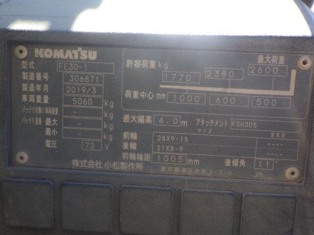 Xe nâng điện 3.0 tấn Komatsu FE30-1 serial 306871 là dòng xe nâng điện ngồi lái được sản xuất tại Nhật Bản, nổi bật với thiết kế chắc chắn, khả năng vận hành mạnh mẽ và độ bền cao trong môi trường làm việc cường độ lớn. Với tải trọng nâng lên đến 3.0 tấn, đây là lựa chọn lý tưởng cho các doanh nghiệp hoạt động trong lĩnh vực sản xuất công nghiệp, kho vận, logistics hoặc các kho hàng có khối lượng hàng hóa lớn. Xe sử dụng hệ thống điện 72V giúp vận hành ổn định, tiết kiệm chi phí nhiên liệu và thân thiện với môi trường. Không chỉ sở hữu hiệu suất làm việc cao, Komatsu FE30-1 còn được đánh giá cao nhờ khả năng thích ứng linh hoạt với nhiều điều kiện vận hành khác nhau. Với chiều cao nâng tối đa khoảng 4.0 mét, xe đáp ứng tốt nhu cầu xếp dỡ hàng hóa trên kệ cao, đồng thời vẫn đảm bảo độ ổn định khi nâng tải ở các mức tâm tải khác nhau như 500 mm, 600 mm và 1000 mm.