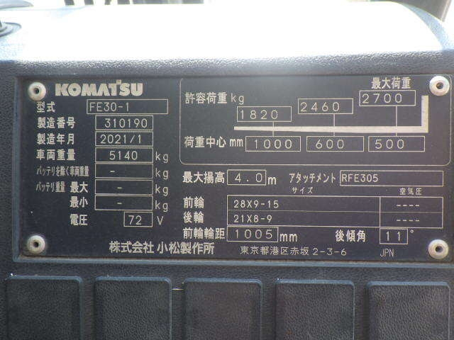 Phía trên là hình ảnh thực tế của xe nâng điện 3.0 tấn Komatsu FE30-1 serial 310190 tại bãi xe. Xe được nhập khẩu trực tiếp từ Nhật Bản, tình trạng hoạt động tốt, sẵn sàng đáp ứng nhu cầu sử dụng ngay cho doanh nghiệp.