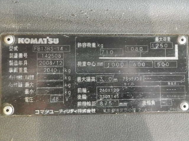 Xe nâng điện đứng lái 1.3 tấn Komatsu model FB13RS-14 serial 142508 |