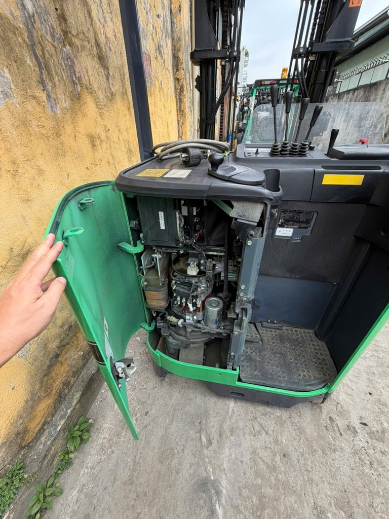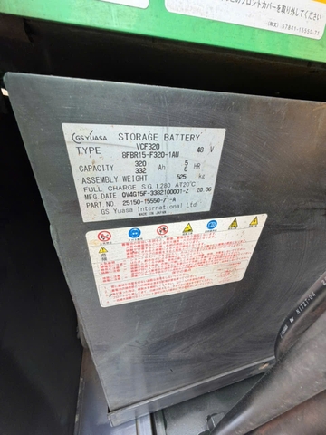 Xe được trang bị bình điện GS Yuasa 48V dung lượng khoảng 320Ah giúp xe có thể làm việc liên tục trong nhiều giờ. Bình điện được sản xuất tại Nhật Bản có độ bền cao và khả năng sạc ổn định, phù hợp với cường độ làm việc trong kho hàng.