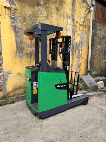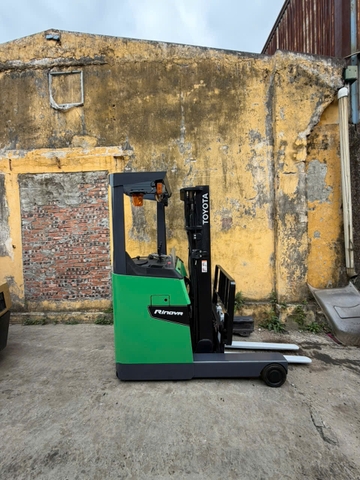 Xe nâng điện đứng lái Toyota 1.8 tấn model 8FBR18 là dòng xe nâng kho chuyên dụng được sản xuất tại Nhật Bản, nổi bật với thiết kế nhỏ gọn, khả năng vận hành linh hoạt và độ bền cao. Dòng xe nâng reach truck của Toyota được nhiều doanh nghiệp lựa chọn sử dụng trong các kho hàng có lối đi hẹp, hệ thống kệ cao hoặc trung tâm logistics cần tối ưu không gian lưu trữ. Với tải trọng nâng 1.8 tấn cùng chiều cao nâng khoảng 3.3 mét, xe nâng điện đứng lái Toyota 8FBR18 giúp doanh nghiệp thực hiện các công việc xếp dỡ pallet nhanh chóng, ổn định và tiết kiệm chi phí vận hành.