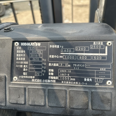 Thông số kỹ thuật xe nâng điện Komatsu 2.5 tấn như sau: