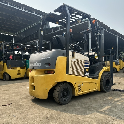 - Dòng xe nâng điện 2.5 tấn Komatsu là dòng xe nâng đối trọng sử dụng động cơ đốt trong với động cơ Komatsu nổi tiếng bền bỉ và tiết kiệm nhiên liêu. Đây là dòng xe nâng phổ dụng , đáp ứng tốt ở nhiều điều kiện môi trường, kho bãi. Là dòng xe sử dụng nhiên liệu điện nên xe có công suất cao, khỏe, chi phí bảo trì thấp .