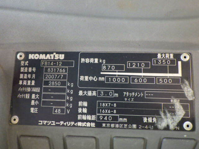 XE NÂNG ĐIỆN CŨ 1.4 TẤN KOMATSU FB14-12 831766
